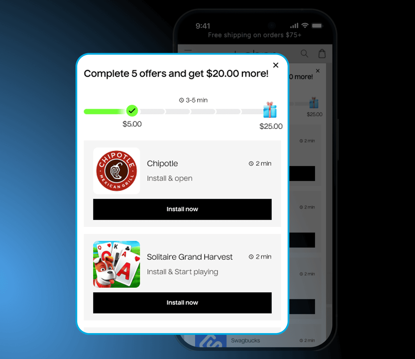 Shoppers engage with the offers instantly, earn savings, and check out with higher-value orders.